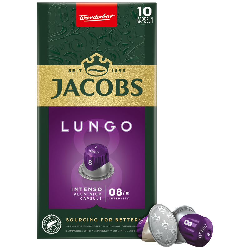 Jacobs Lungo 8 Intense espresso capsules heart is a high-quality Arabica and intense Robust interaction. In this way, this mixture reveals its intense, sincere and deep note.