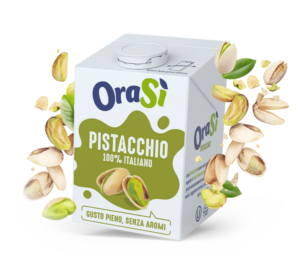 OraSì Pistachio contains pistachios of Sicily of 100% Italian origin, without added aromas, for a 100% vegetable drink with an intense and delicious taste.