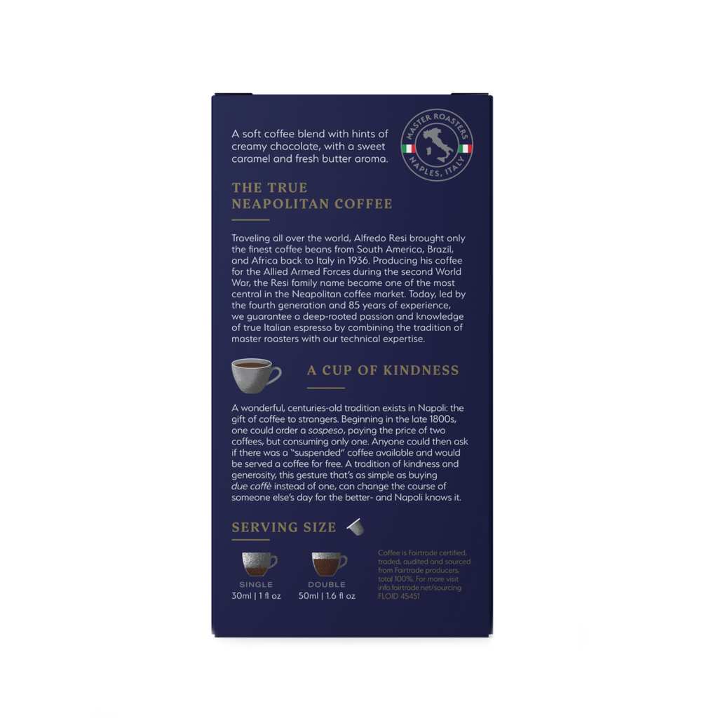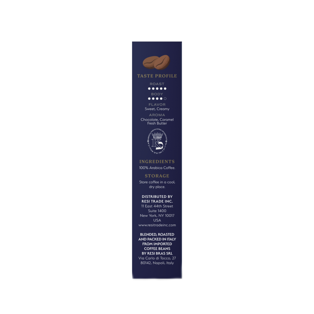 Nero Intense is a soft coffee blend with hints of creamy chocolate, with a sweet caramel and fresh butter aroma.