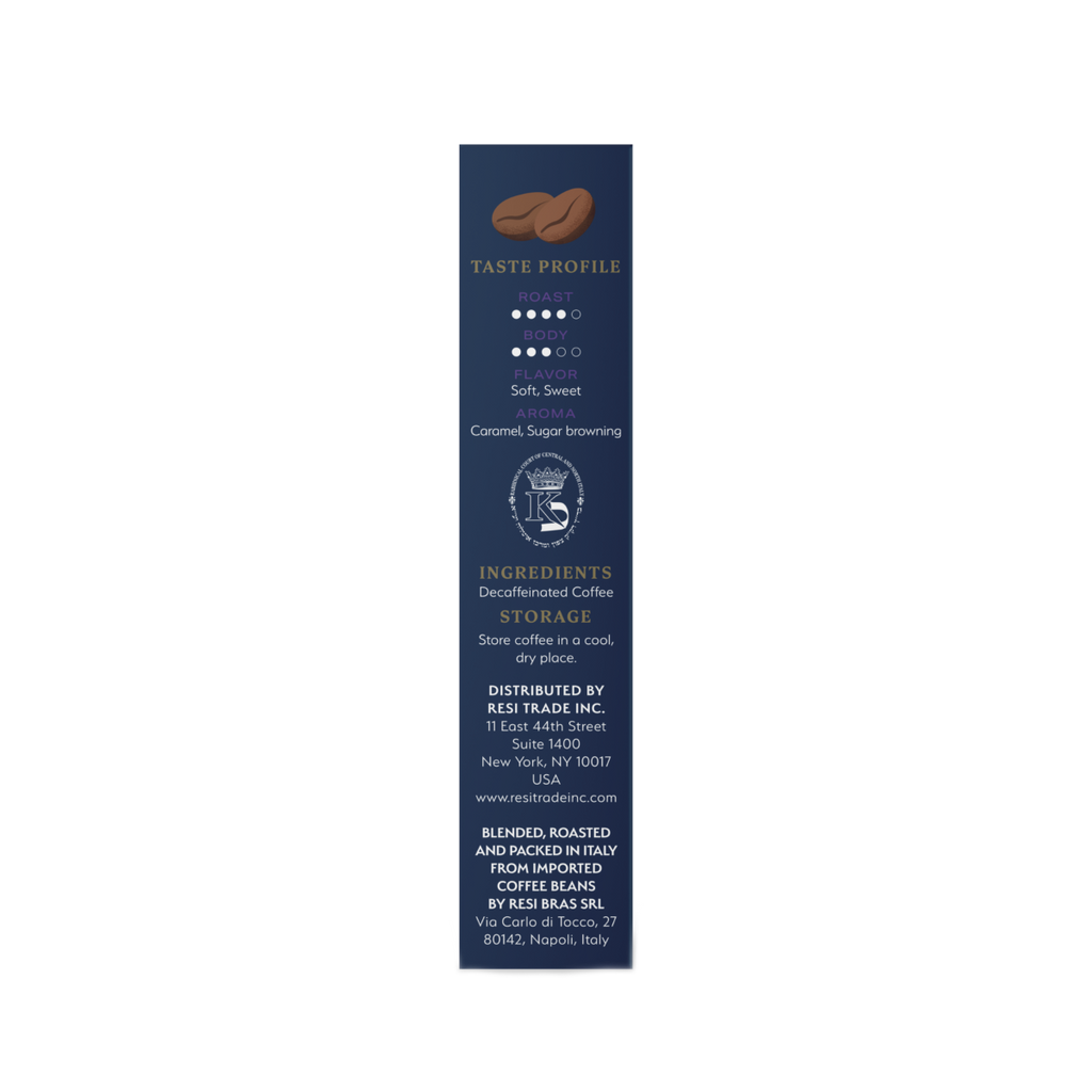 Viola Decaf is a decaffeinated blend with all the strength and intense aroma of a classic, rich coffee.