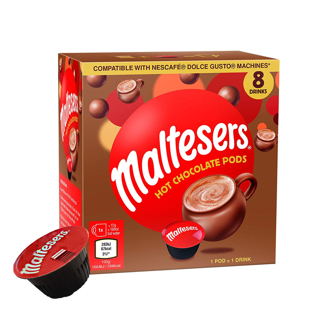 Treat yourself to the irresistible combination of smooth coffee and crunchy malted chocolate with our Dolce Gusto Compatible Maltesers Pods!